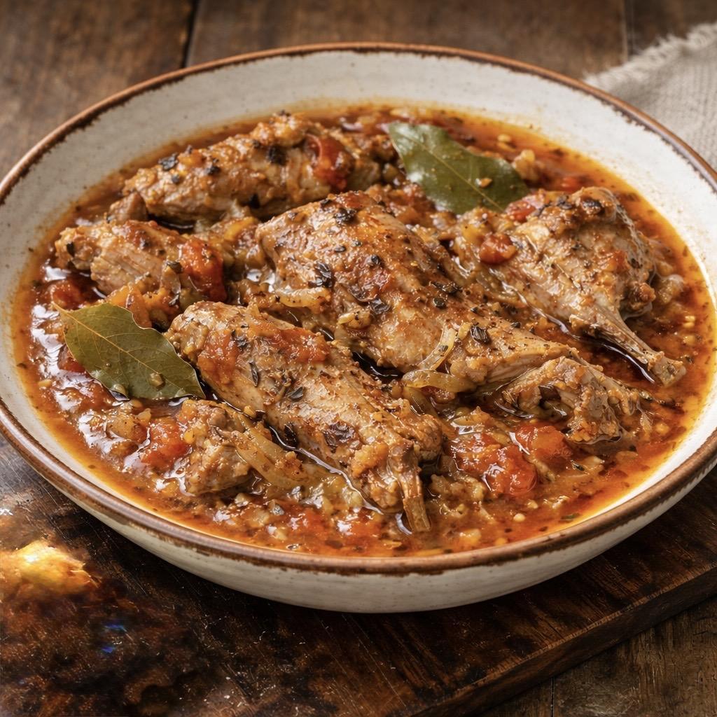 Rabbit Stew (Myzeqe style) is a traditional dish cooked slowly to achieve rich flavors and tender meat. With plenty of onions, herbs, and gentle simmering, this recipe reflects the heart of rural Albanian cuisine.