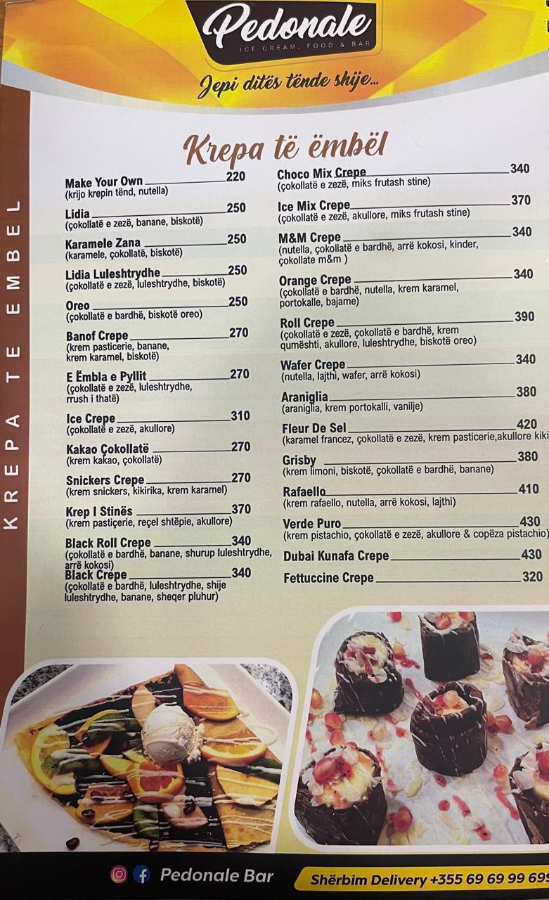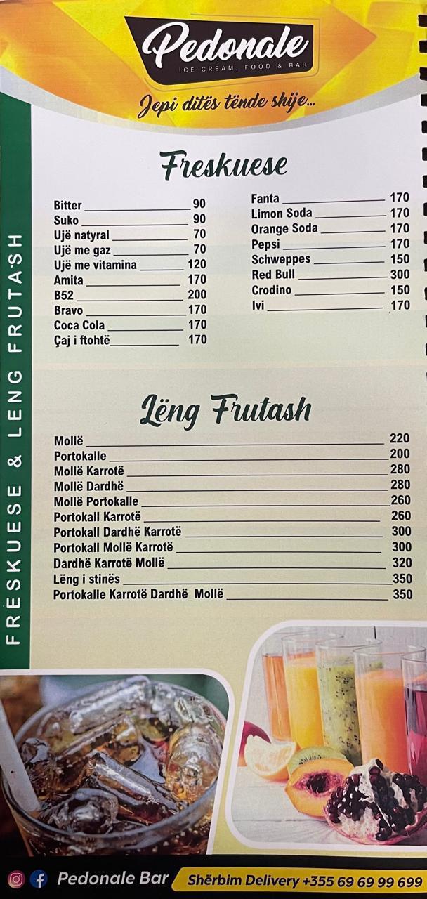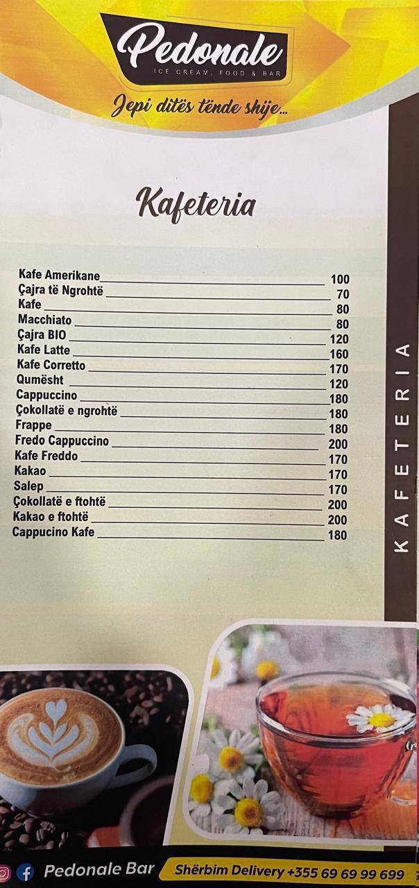 Pedonale Bar është një vend modern dhe mikpritës në qendër të Lushnjës. Ofron kafe, pije freskuese, koktejle dhe ushqime te ndryshme në një ambient të këndshëm. Vendi ideal për takime dhe momente relaksi me miqtë.